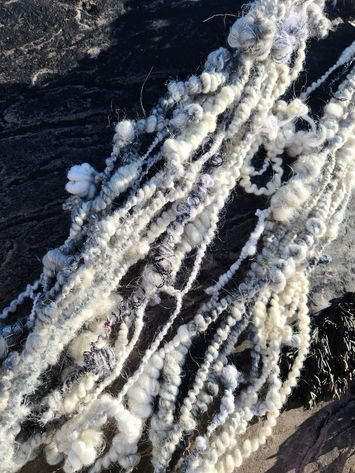 I use many different freestyle spinning techniques and a range of fibres to translate my ideas into textured yarns that eventually form the basis of my eclectic weavings.